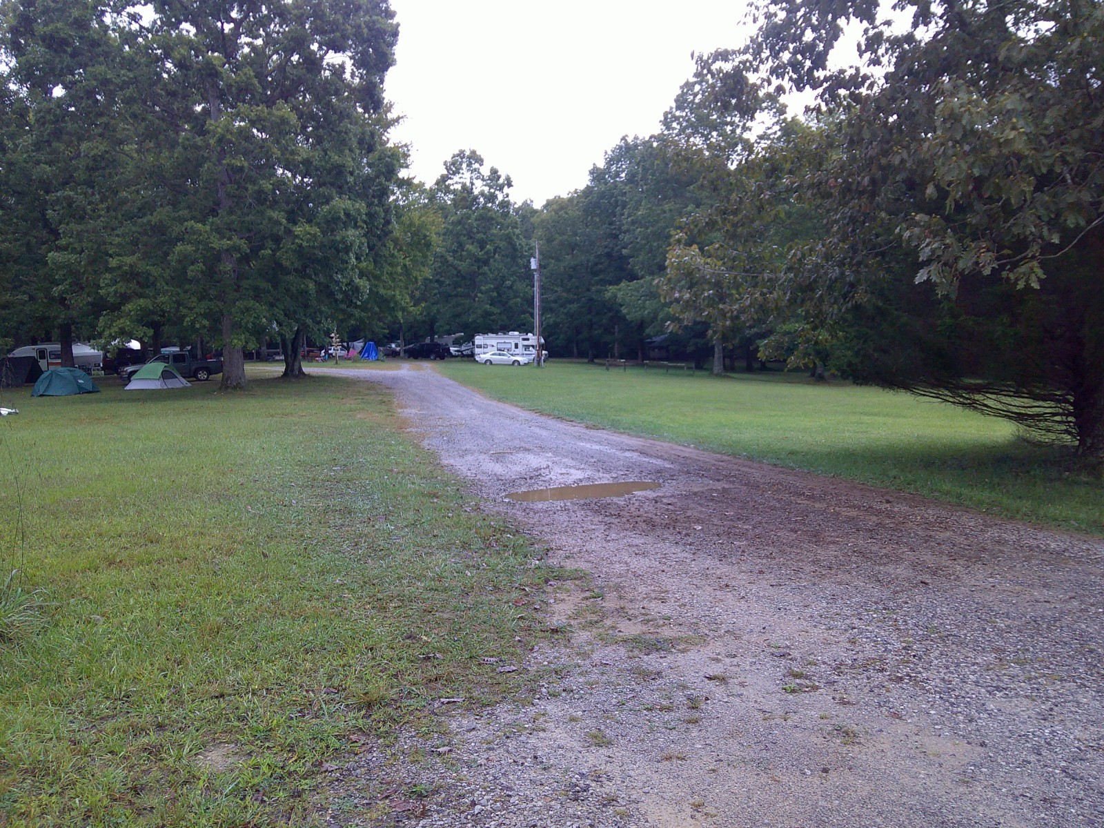 The road into Caver’s Paradise is very convoluted. Good thing I had it marked on the GPS. The roads are all paved up to the site. The internal roads are all gravel. It is basically just one loop. I walked around the grounds for a few minutes. The shower and bath house has a men’s and women’s side. The men’s side is non-functional, so the women’s side is really unisex. There is a sauna and a hot tub. The site is about 10 acres, much of which is heavily wooded. There is a small pond on the property. There is a covered pavilion which has a sink, and nearby is a firepit.