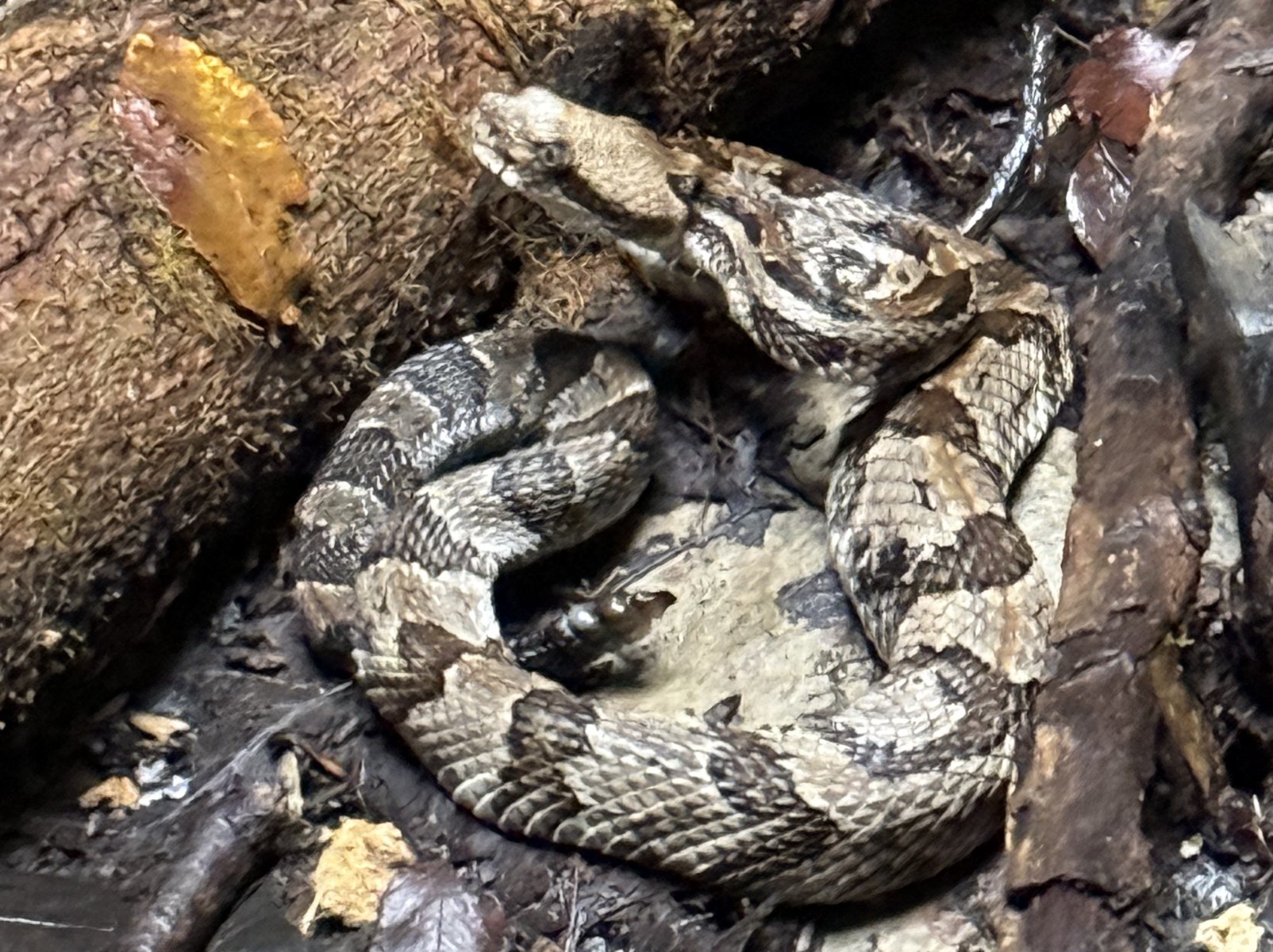 A live rattlesnake at the bottom of Neversink. Photo by Tristin Whetstine.